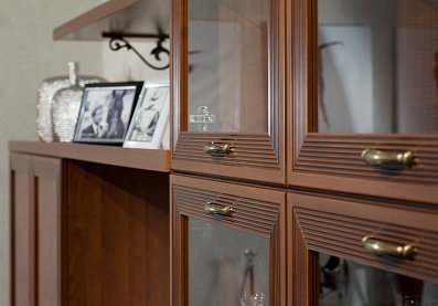 - Отделка фасадов выполнена испанским шелковисто-матовым лаком и патиной (эффект состаренного дерева);